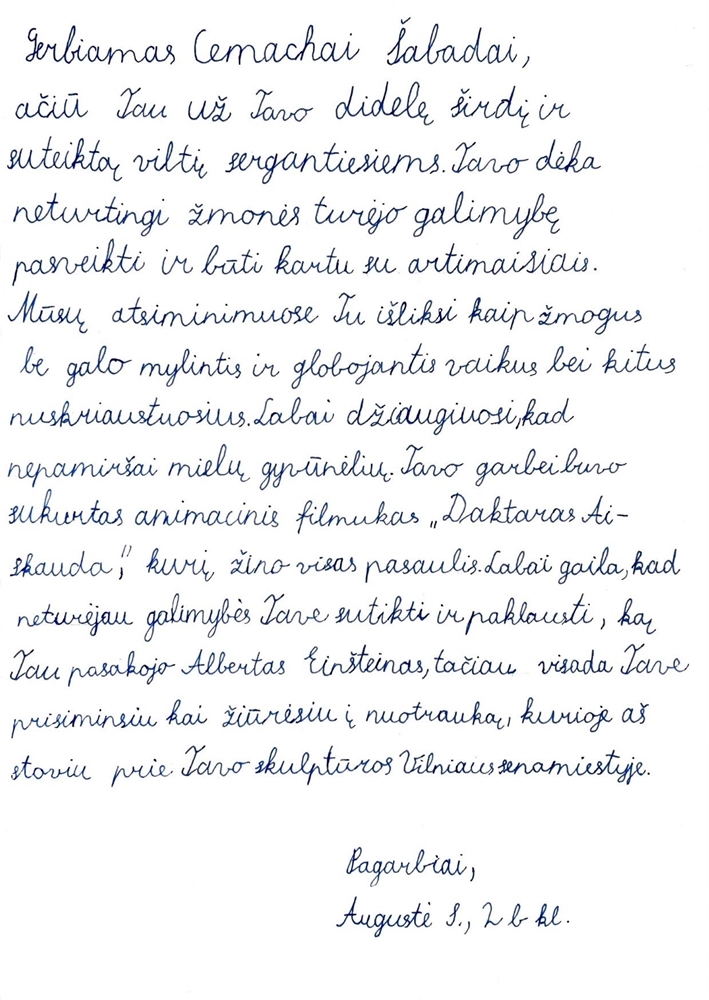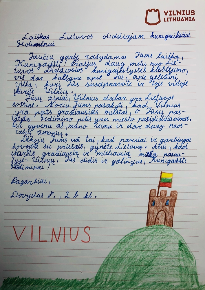 Mažieji progimnazijos antrokai kartu su mokytoja Jūrate Skurkiene nuo Vasario 16-osios iki Kovo 11-osios šventė Lietuvos gimtadienį, prisimindami jos kūrėjus. Lietuvą, kurioje gyvename šiandien, sukūrė jie – šalies vadovai ir karvedžiai, partizanai ir menininkai, knygnešiai ir mokytojai – Lietuvos herojai, kuriems šiandien sakome ačiū už kiekvieną dieną laisvoje tėvynėje. Per integruotą lietuvių kalbos ir pasaulio pažinimo pamoką virtualiai keliaudami po Vilnių ir aplankydami istorinių asmenybių paminklus, mokiniai ieškojo asmeninio ryšio su visai Lietuvai svarbiu herojumi ar įkvepiančia asmenybe. Su džiaugsmu sutiko dalyvauti LR Prezidento Gitano Nausėdos inicijuotoje akcijoje „Laiškas istorijai“. Daugiausia laiškų buvo skirta pirmajam ir vieninteliam Lietuvos karaliui Mindaugui, Vilniaus įkūrėjui kunigaikščiui Gediminui, Vasario 16-osios Nepriklausomybės akto signatarui, tautos patriarchui Jonui Basanavičiui, tautinio atgimimo veikėjui, Lietuvos himno autoriui Vincui Kudirkai, gydytojui Cemachui Šabadui „Daktarui Aiskaudai“. Mokiniai laiškuose dėkojo istoriniam herojui už jo nuveiktus darbus, pasakojo, kokia Lietuva yra šiandien, pasidalijo mintimis ir svajonėmis. Gimtosios šalies grožį, meilę jai mokiniai aprašė eilėmis savo kūrybos eilėraščiuose.