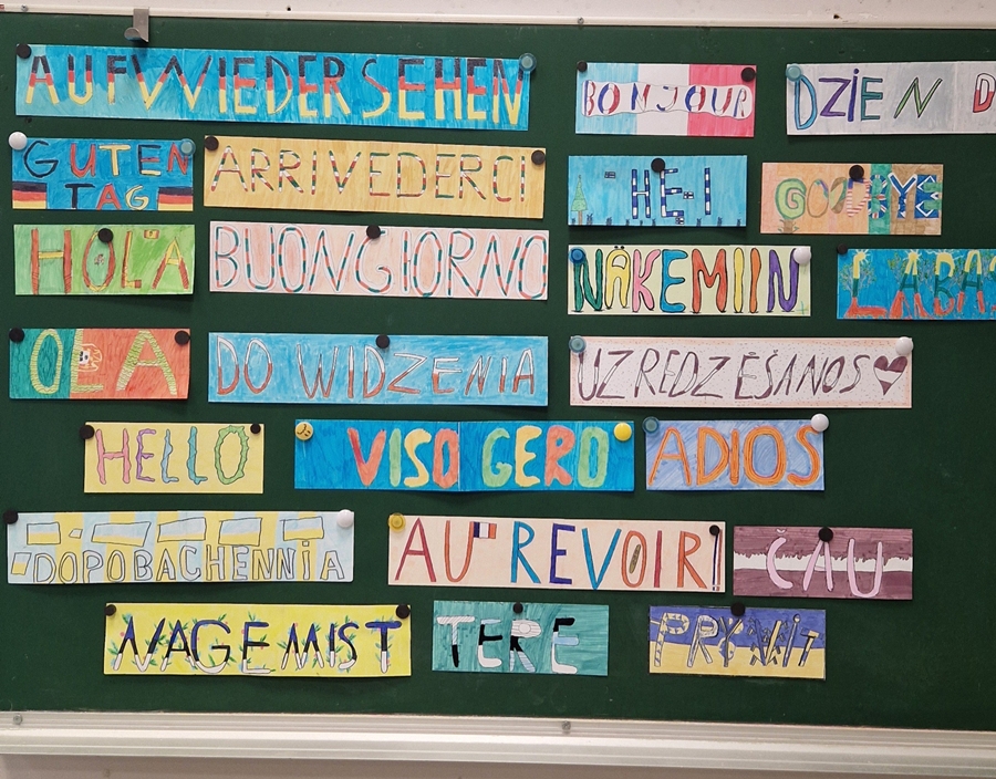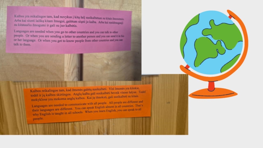 Kviečiame visus pakilti į pradinukų korpusą (2 aukštas) ir pasidžiaugti mokinių darbais, o gal ir išmokti naujų žodžių užsienio kalbomis!