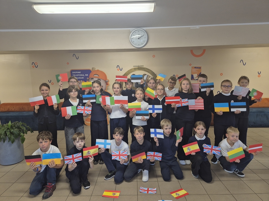 Anglų kalbos mokytojos Eglė ir Vaida dėkoja pradinių klasių mokytojoms Rasai ir Deimantei bei jų mokiniams už bendradarbiavimą, pažymint šią ypatingą dieną.