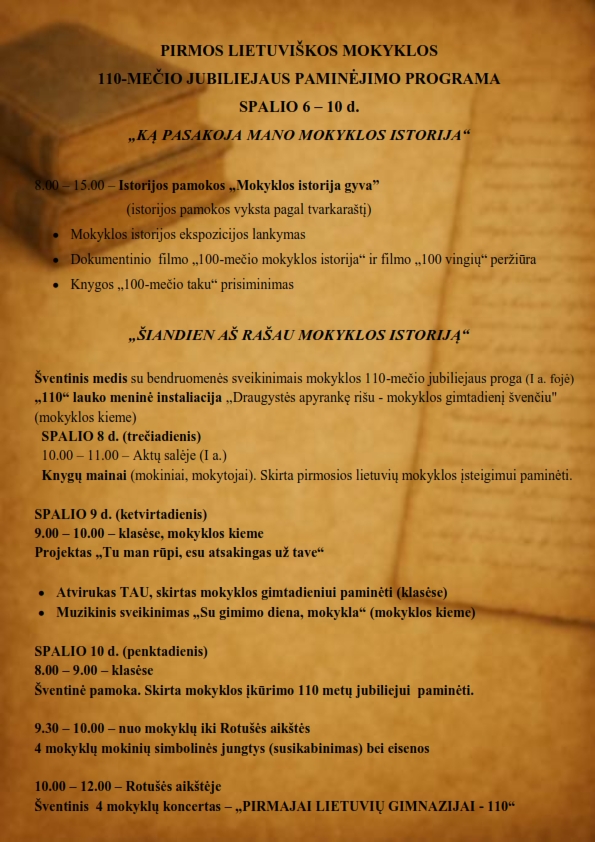 MOKYKLOS 110-ČIO JUBILIEJAUS PAMINĖJIMAS