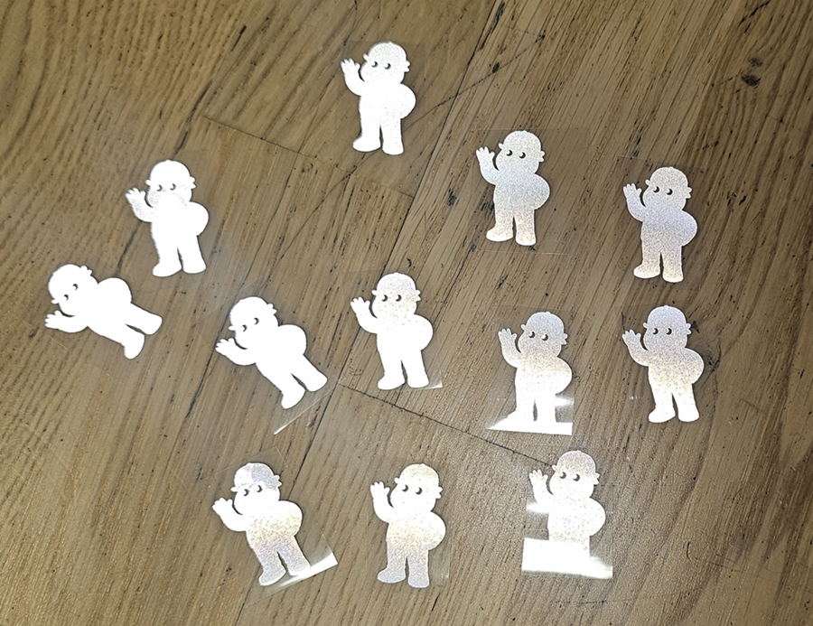 Įprasti apvyniojami arba prisegami atšvaitai greitai pasimeta arba vaikai juos paprasčiausiai pamiršta užsidėti, todėl, šios saugumo akcijos sumanytojai, kilo mintis atšvaitų ženklus tiesiog prilipdyti prie viršutinių drabužių.