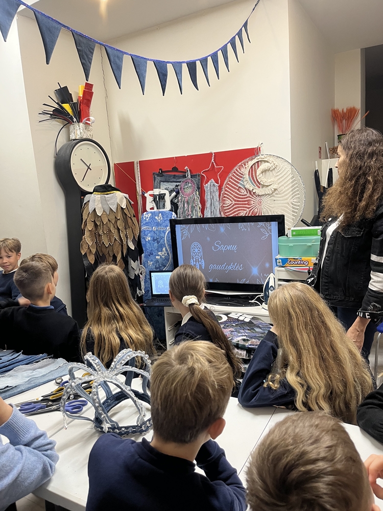 Mokiniai džiaugėsi savo darbais – kiekviena sapnų gaudyklė tapo unikali, atspindinti kūrėjo asmenybę ir fantaziją. Pamokos pabaigoje aptarėme, ką išmokome ir pasidžiaugėme, kad iš paprastų, senų daiktų galima sukurti kažką gražaus, turinčio prasmę ir istoriją.