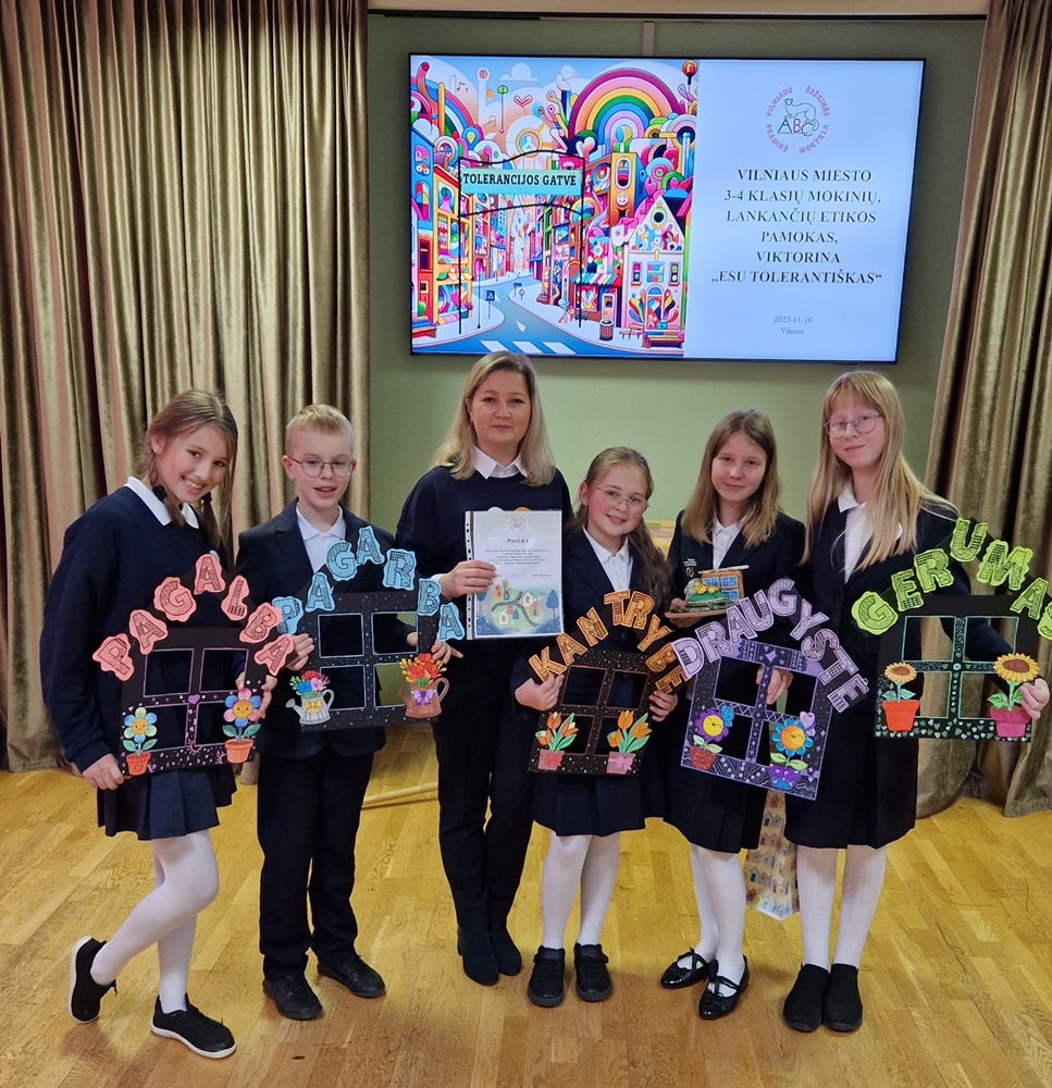 Lapkričio 13 d. 4a klasės komanda „Skirtingi, bet kartu“ dalyvavo Vilniaus miesto 3–4 klasių mokinių viktorinoje „Esu tolerantiškas“, kuri vyko Vilniaus Šeškinės pradinėje mokykloje. Renginys buvo skirtas M. K. Čiurlionio 150-osioms gimimo metinėms paminėti. Viktorinos metu ketvirtokų komandos atliko įvairias užduotis, reikalaujančias kūrybiškumo, žinių bei gebėjimo dirbti kartu.