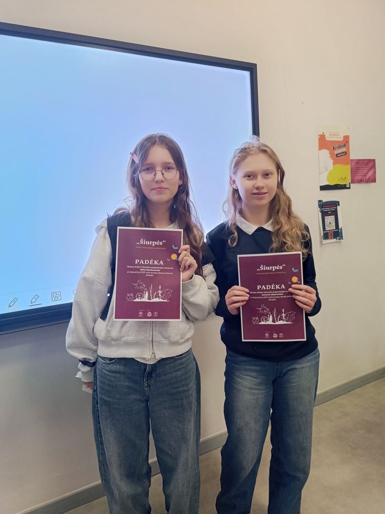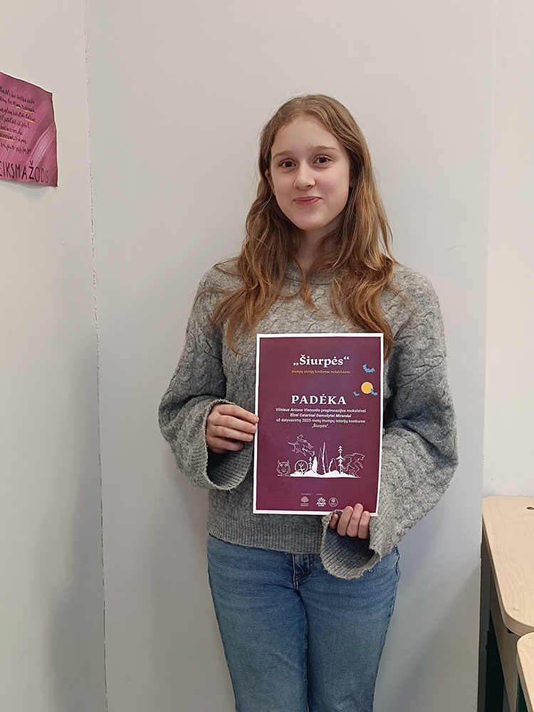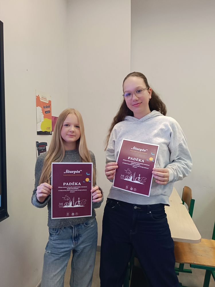 Šiais mokslo metais mūsų 6–7 klasių mokiniai, paskatinti lietuvių kalbos ir literatūros mokytojos Gabijos Bliūdžiūtės, dalyvavo Kauno apskrities bibliotekos „Ąžuolynas“ penktus metus iš eilės organizuojamame trumpų istorijų konkurse „Šiurpės“.