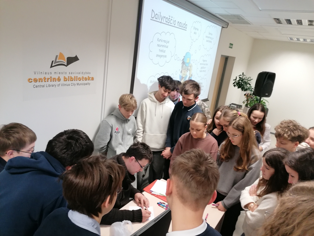 Sausio 30 d. 7mB klasė dalyvavo edukacijoje Vilniaus miesto savivaldybės centrinėje bibliotekoje "Keisk tušinuką į plunksnakotį".