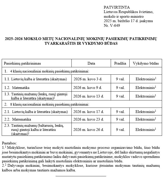 Besiruošiant 2026 m. Nacionaliniams mokinių pasiekimų patikrinimams, skelbiame Nacionalinės švietimo agentūros parengtas