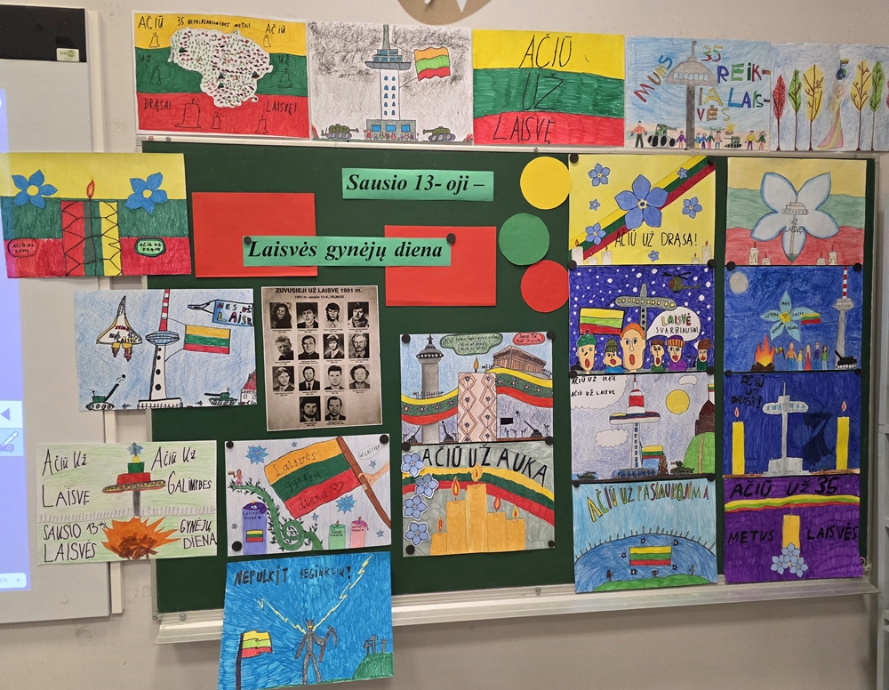 Minėdami Laisvės gynėjų dienos 35 – ąsias metines, 4a klasės mokiniai dalijosi savo mintimis apie tai, kas jiems yra laisvė. Suprasti šią sąvoką padėjo pokalbiai apie praeitį, dabartį, asmeninės artimųjų patirtys bei kūrybinė veikla klasėje.