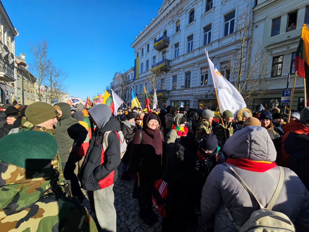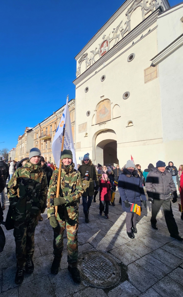 Valstybės atkūrimo dieną progimnazijos bendruomenė prisijungė prie jau tradicine tapusios eisenos „Lietuvos valstybės keliu“. Eisena prasidėjo pačioje sostinės širdyje: nuo Šventaragio slėnio, Vilniaus katedros ir driekėsi pro Signatarų namus, Rotušę, Nacionalinę filharmoniją, mūsų mokyklą. Eisena baigėsi Rasų kapinėse, kur atiduota pagarba ten amžinojo poilsio atgulusiems signatarams, 1863 m. sukilimo vadams bei Nepriklausomybės kovų savanoriams. Džiaugiamės, jog Valstybės atkūrimo dieną paminėjome įvairiai ir prasmingai!