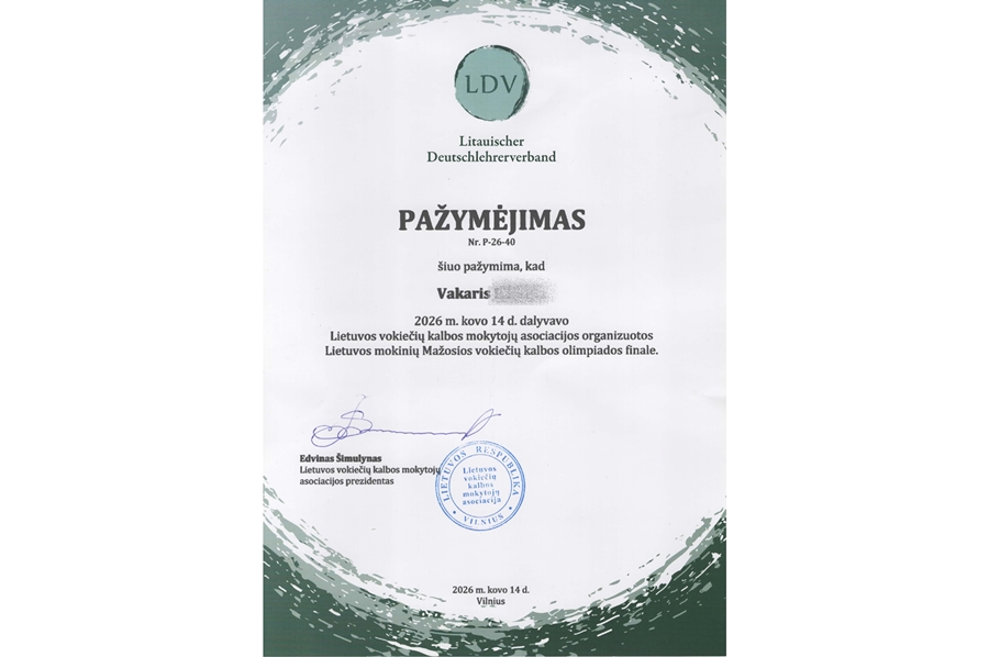 2026 m. kovo 14 d.Vilniaus licėjuje vyko Lietuvos mokinių 8 ir 10 klasių vokiečių kalbos mažosios olimpiados finalinis turas, į kurį kviečiami geriausiai pirmuosiuose etapuose pasirodę...